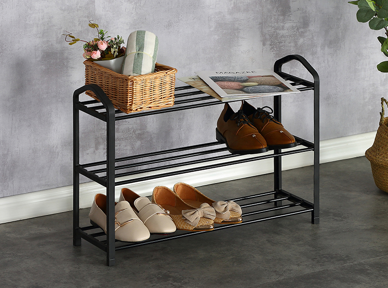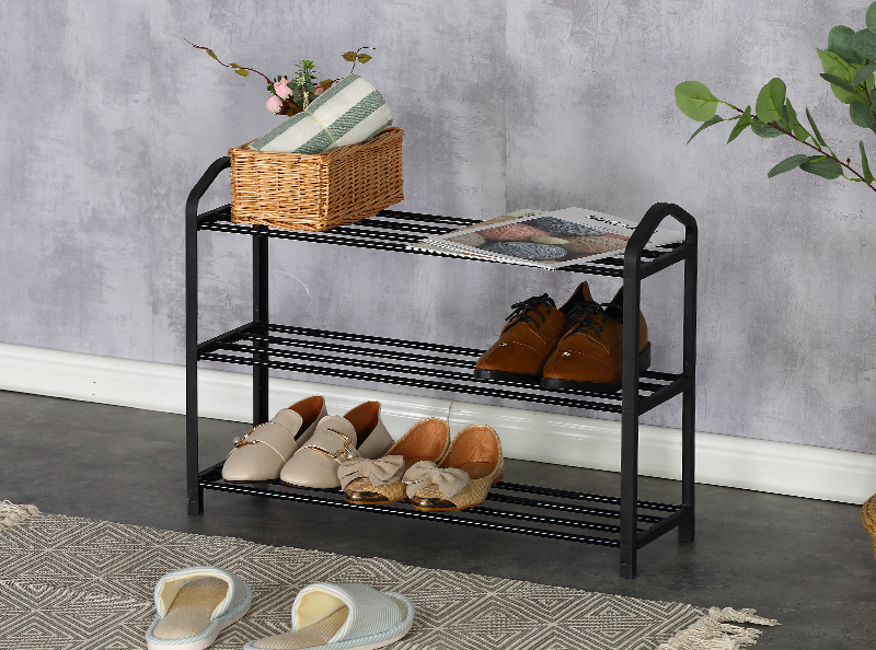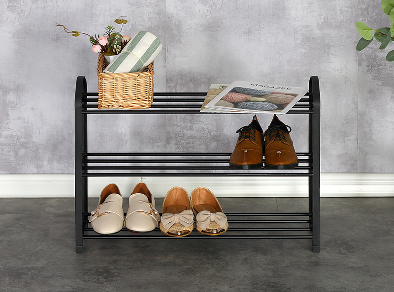 Name:SHOE RACK-XJ33KTurnover time:2022/10/24 9:33:49 Product Name ◎Shoe Rack ◎3-Tier Organizer for Closet, Bathroom, Entryway ◎Shoe Shelf Holds 9 Pair Sneakers, Heels, Boots Product Parameters Model:XJ33K Product Size:62.5*19*44cm Material:(1)Steel tube with electric coating in black (2)Plastic connector in black Shape:Rectangular |